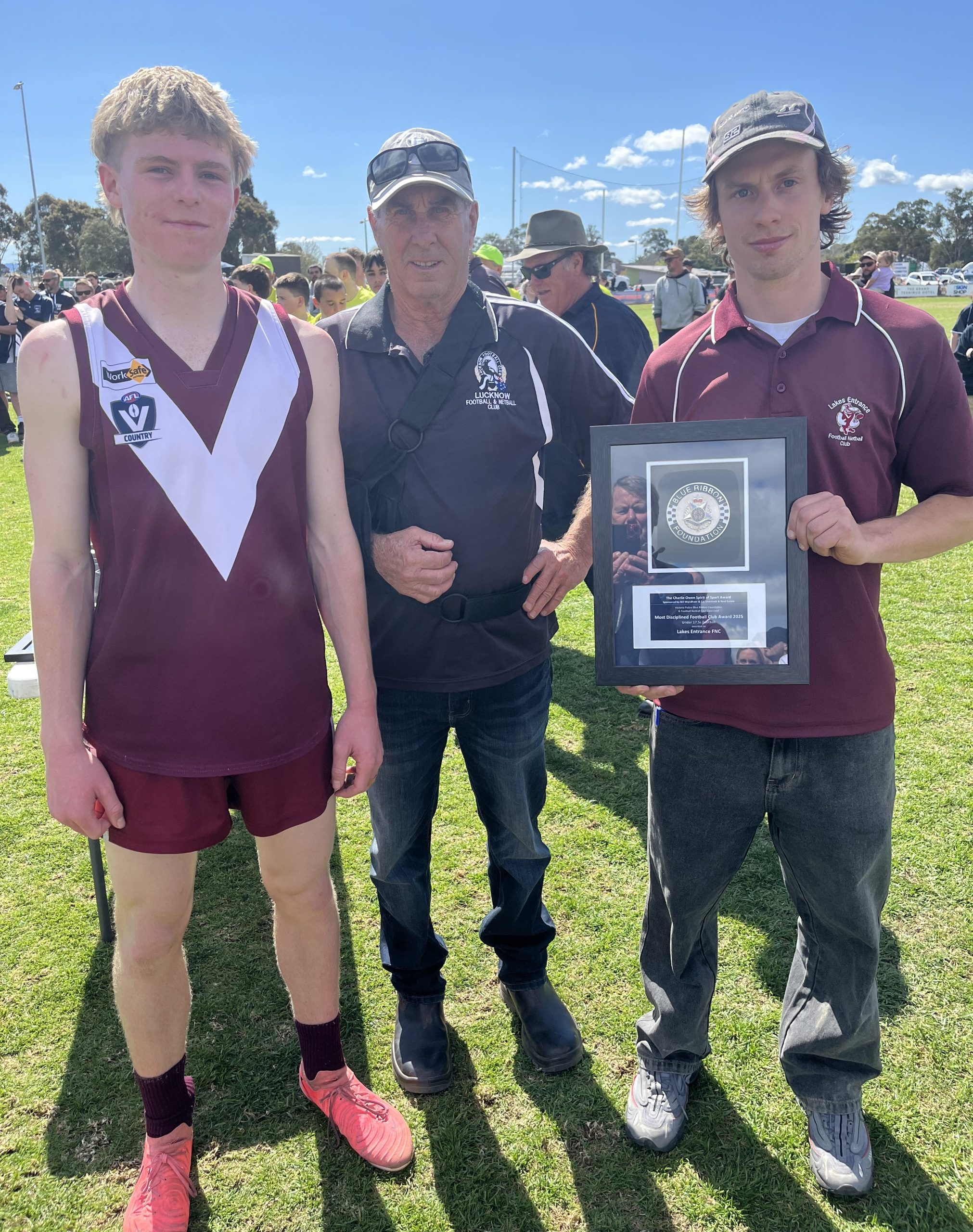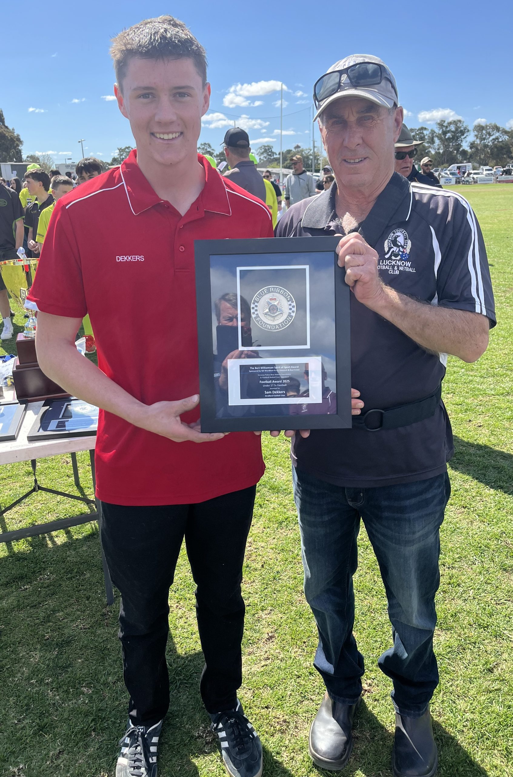 The Under 15 netball award went to Holly Hanratty, Under 17.5s football award went to Sam Dekkers. The Under 17.5 Most Disciplined Football Club Award was won by Lakes Entrance. The Under 17.5s Football coach of the Year was awarded to Jordan Cullen from Lakes Entrance FNC and the Junior Umpire of the Year was won by Liam Kool.